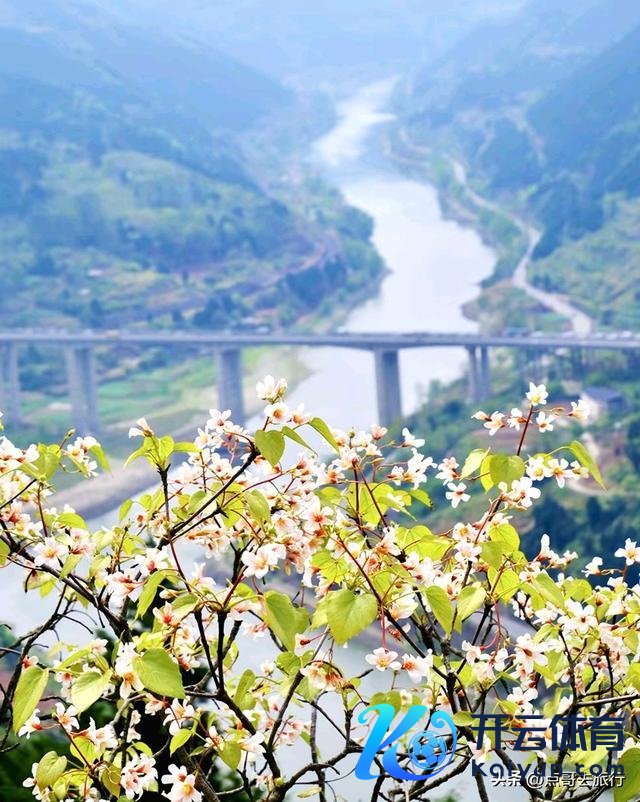 桐花雪瀑与江峡同框:茶儿岩不雅景台是最好机位,可同期拍到漫山桐花、沱江大弯、成巴高速大桥、兑现铁路,“花、江、桥、车” 同框,顺手出大片。