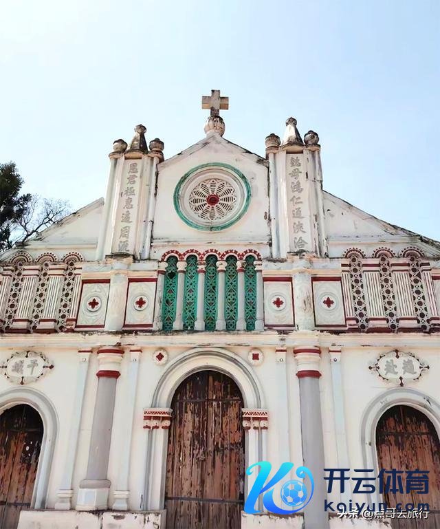 百年教堂藏花海:1772年川西最早上帝教堂--舒家湾上帝堂,被桐花环绕,石墙、彩色玻璃与白花相映,阵势纵欲拉满。