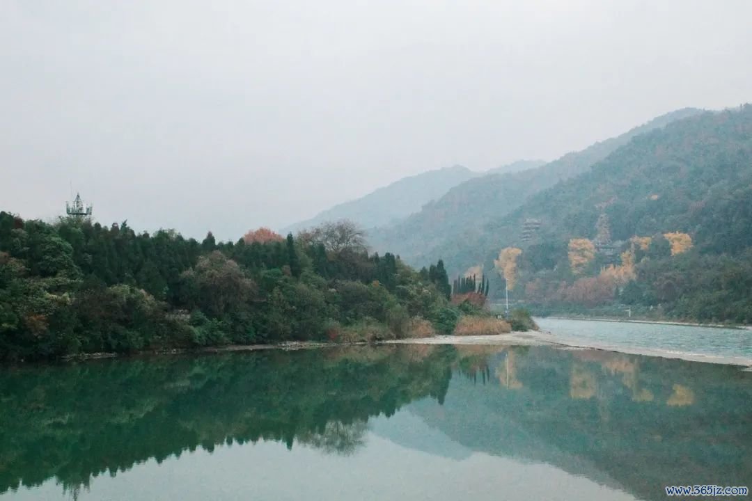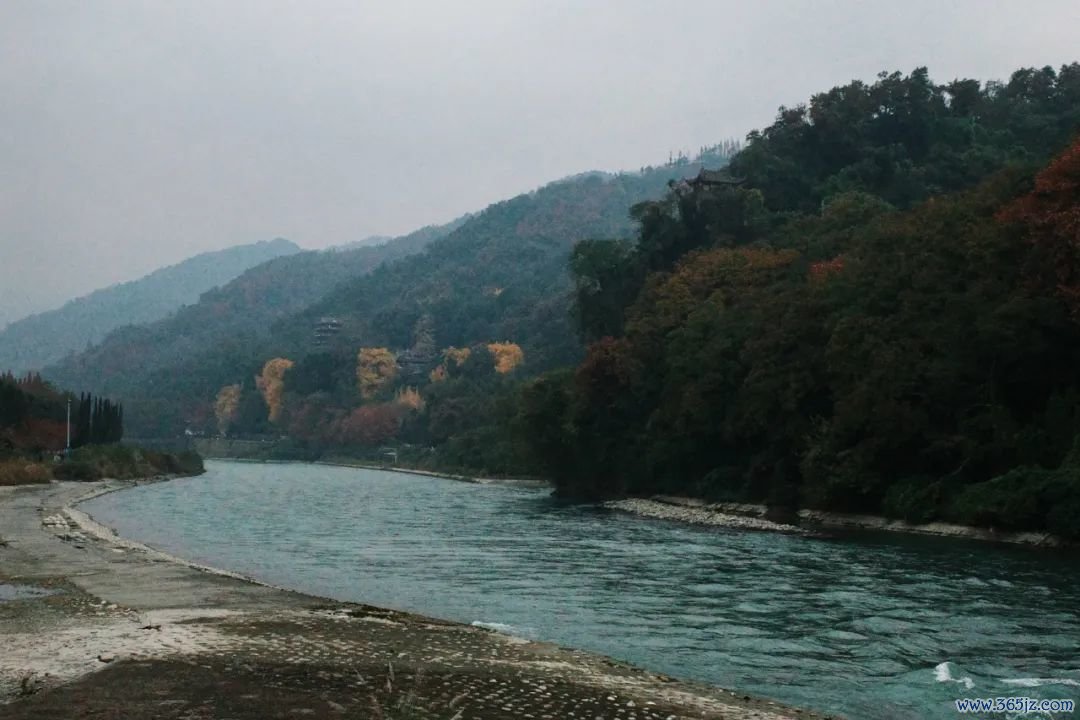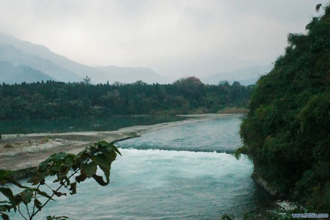 冬季是岷江枯水期,左近山林天然少了些翠绿盎然,但皆江堰的水,反倒呈现出一种超乎寻常的走漏与翠绿。