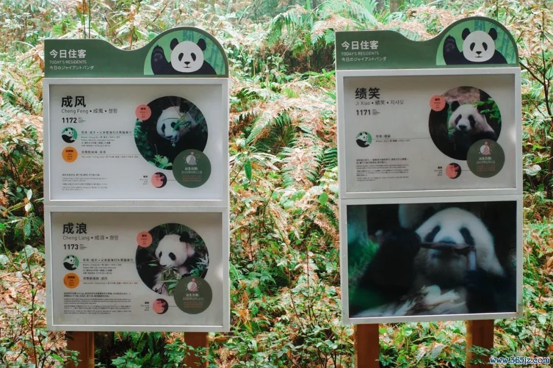 每个园区皆有不同的大熊猫个体,或是同住在一起的熊猫,可以近距离不雅察它们的生涯情状。