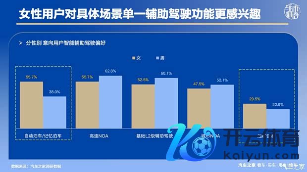 女性用户在援救驾驶上,更偏疼 “单一、具象、处理明确痛点” 的功能,对复杂怒放功能酷爱酷爱偏低。其中,自动停车 / 驰念停车偏好达55.7%,与高速 NOA 握平,突出男性17.7 个百分点;辛劳召唤偏好相似高于男性 6.6 个百分点。对巨额女性用户而言,汽车是生计伙伴而非 “大玩物”,她们更追求径直、浅薄、可感知的实辛勤能。