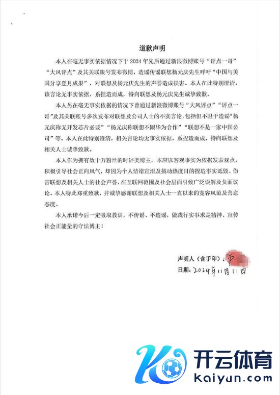 新浪科技讯 12月5日上昼音信开云官方,博主“大风评点”发布针对子思集团及有关东谈主士的谈歉声明,承认因“个情面绪宣泄及煽动热度标的持造事实谩骂、伤害联思及有关东谈主士的社会声誉”。