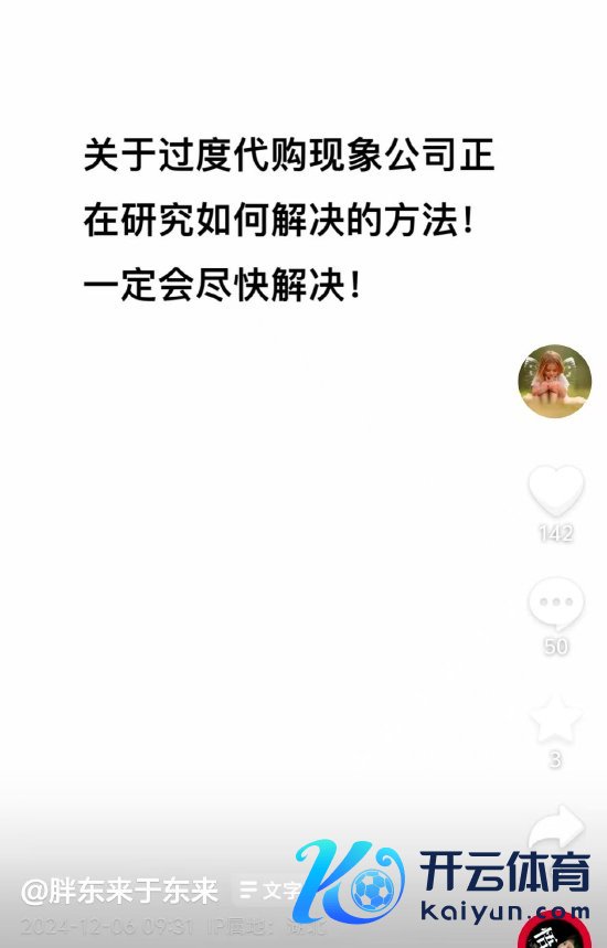 12月6日上昼音讯开云官方,胖东来首创东谈主于东来当天在抖音上发文称,“对于过度代购空闲公司正在斟酌何如惩办的要道!一定会尽快惩办!”