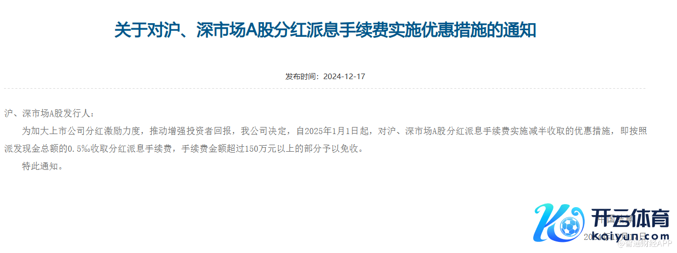 12月17日,中国结算发布奉告,自2025年1月1日起,对沪、深阛阓A股分成派息手续费扩充减半收取的优惠要领,即按照派发现款总数的0.5‰收取分成派息手续费,手续费金额高出150万元以上的部分给予免收。