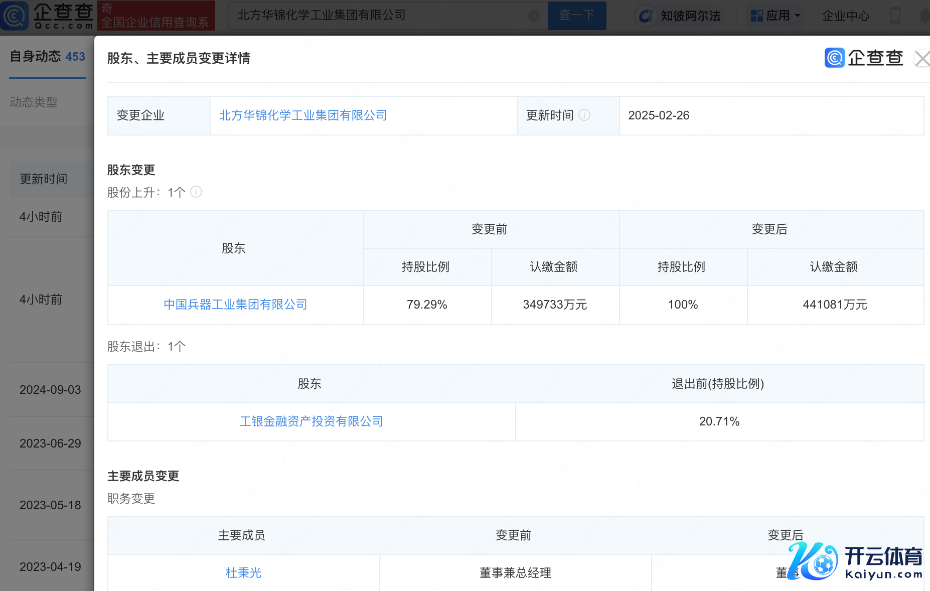 企查查APP显现,近日,朔方华锦化学工业集团有限公司发生工商变更,工银金融金钱投资有限公司退出鞭策行列,中国刀兵工业集团有限公司抓股比例由79.29%高潮至100%。企查查信息显现,该公司成就于2002年,法定代表东说念主为任勇强,注册成本44.11亿元,计较限度包含:口岸计较,挪动式压力容器/气瓶充装,特种斥地制造,特种斥地筹谋等。