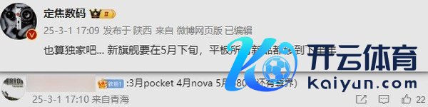 该博主还爆料称,华为新旗舰要5月下旬才会亮相,平板等新品王人移到下半年发布。对此,有网友纪念称,Pocket 3将在3月发布,nova 14系列会在4月发布,而Pura 80系列以及尊界S800的发布会瞻望在5月。