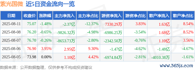 本站音信,戒指2025年8月11日收盘,紫光国微(002049)报收于75.07元,下落1.48%,换手率2.98%开云官网登录入口,成交量25.34万手,成交额19.12亿元。