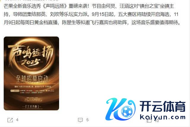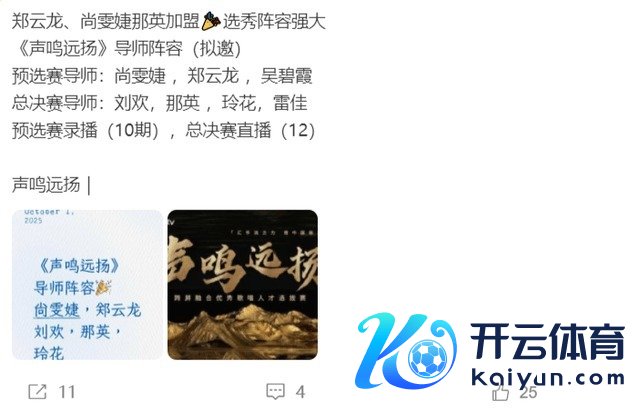 从传出的音书上看,预选赛的导师有尚雯婕、郑云龙、吴碧霞,而送决赛的导师有刘欢、那英、玲花、雷佳,不得不说kaiyun网站,导师气势短长常豪华的,诸位读者,你们期待《声鸣远扬2025》吗?让咱们共同时待杨子犬子“杨海润”的进展吧!
