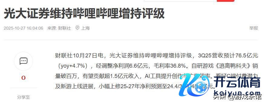 在《逃离鸭科夫》销量破百万时,光大证券发布研报估算该游戏有望孝顺超1.5亿元的收入,保管B站“增捏”评级。