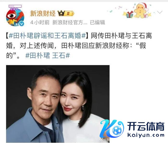 天然kaiyun网站就在公论缓缓发酵,王石夫人也终于出头辟谣,田朴珺通过外交账号发文,径直否定了和丈夫仳离的音尘,况且称两东谈主的研讨很好,而且账号里也莫得遮蔽像片,王石则是在继承记者采访时,否定了两东谈主婚变,抄网上的音尘齐是假的
