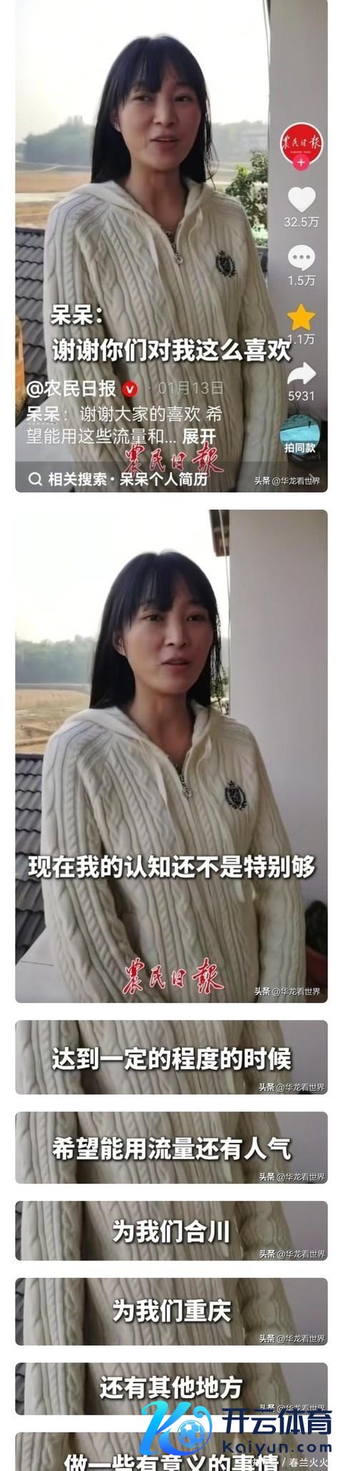 在她桑梓杀猪宴火出天空的那几天里,有央媒前往现场对她进行了采访,呆呆在不休蹙悚的情景下,说出的却是一番古道的言语!只不外其时网友忙着凑过问云杀猪,莫得东说念主细心过呆呆采访说的话。