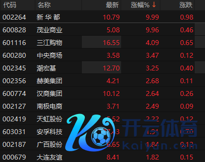 上证报中国证券网讯 11月26日早盘,零卖板块颤动拉升,界限9时41分,茂业营业2连板,三江购物涨逾4%,中央市场、潮宏基、赫好意思集团等纷繁走高。新华皆开盘涨停开云官网登录入口,得益4连板。