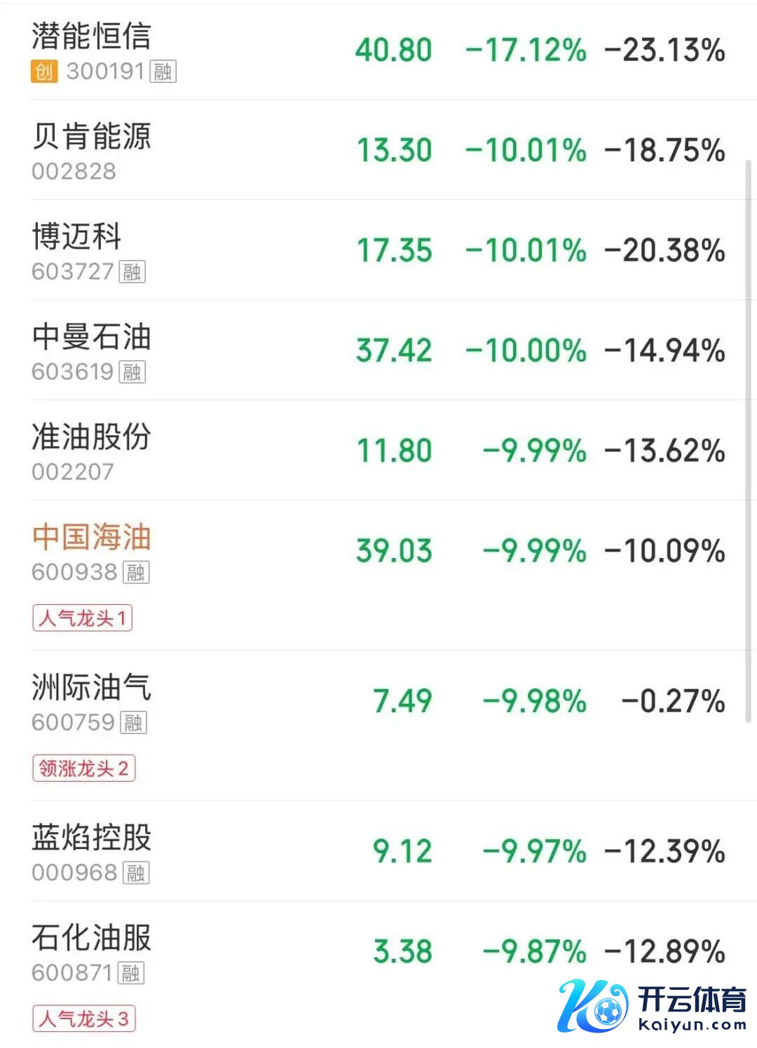 油气板块大面积低开,“三桶油”大跌,洲际油气、山东墨龙、石化油服、准油股份跌停,科力股份、特瑞斯、潜能恒信、通源石油等低开超10%。
