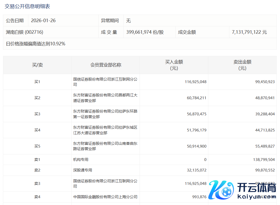 湖南白银当天涨停,有1家机构专用席位净卖出1.39亿元湖南白银当天涨停,有1家机构专用席位净卖出1.39亿元