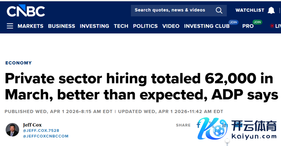 CNBC报谈称,好意思国工资处罚公司ADP周三发布的最新私营部门招聘数据裸露,三月份好意思国私营部门办事增长好于预期,天然医疗和诞生业依然提供了确凿沿路的新增招聘岗亭。