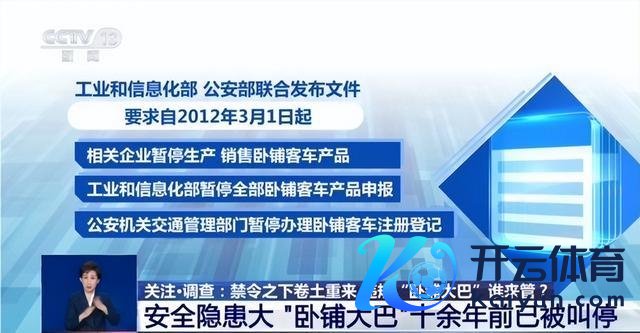 内容上,早在2011年底,针对其时卧铺客车车内易燃品多、逃生通说念狭小等隆起安全隐患,工业和信息化部、公安部集聚发布文献,条件自2012年3月1日起,联系企业暂停坐蓐、销售卧铺客车居品,工业和信息化部暂停一齐卧铺客车居品通告,公安机关交通治理部门暂停办理卧铺客车注册登记。
