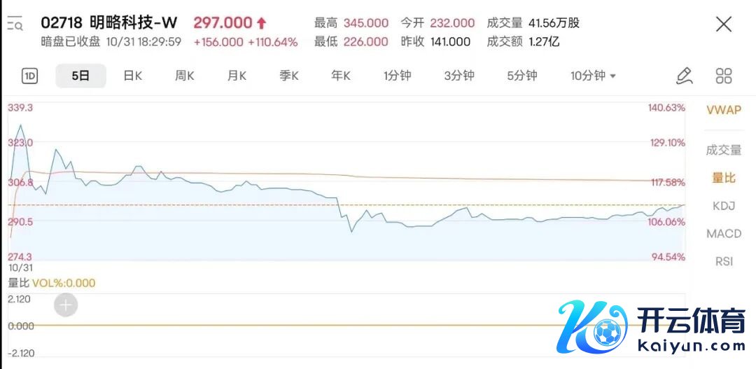 法规黑市收盘,明略科技富途黑市报297港元/股,涨幅为110.64%;成交量达到了41.56万股,成交额约1.27亿港元。辉立黑市报295港元/股,涨幅109.22%;成交额也达到1.15亿港元。